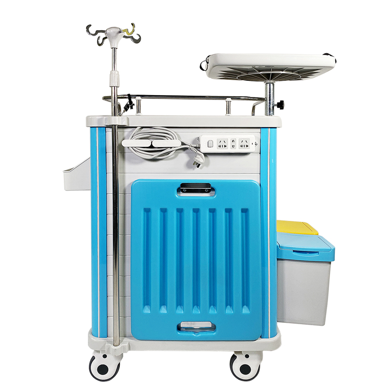 12、可选配置:除颤平台、伸缩式副工作台、电源座、氧气瓶座、断针桶、双联垃圾桶;